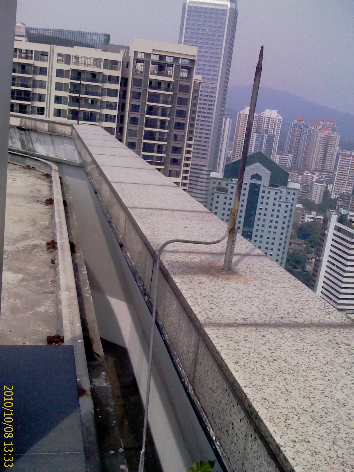 第二種情況原結(jié)構(gòu)會做內(nèi)部防雷,就是用主體結(jié)構(gòu)的鋼筋作為引下線,這種情況下我們可以把引下線接在接閃器上,可能接閃器不夠,所以這個時候可以多增加幾個接閃器,做在支架系統(tǒng)的立柱上。接閃器安裝如下: