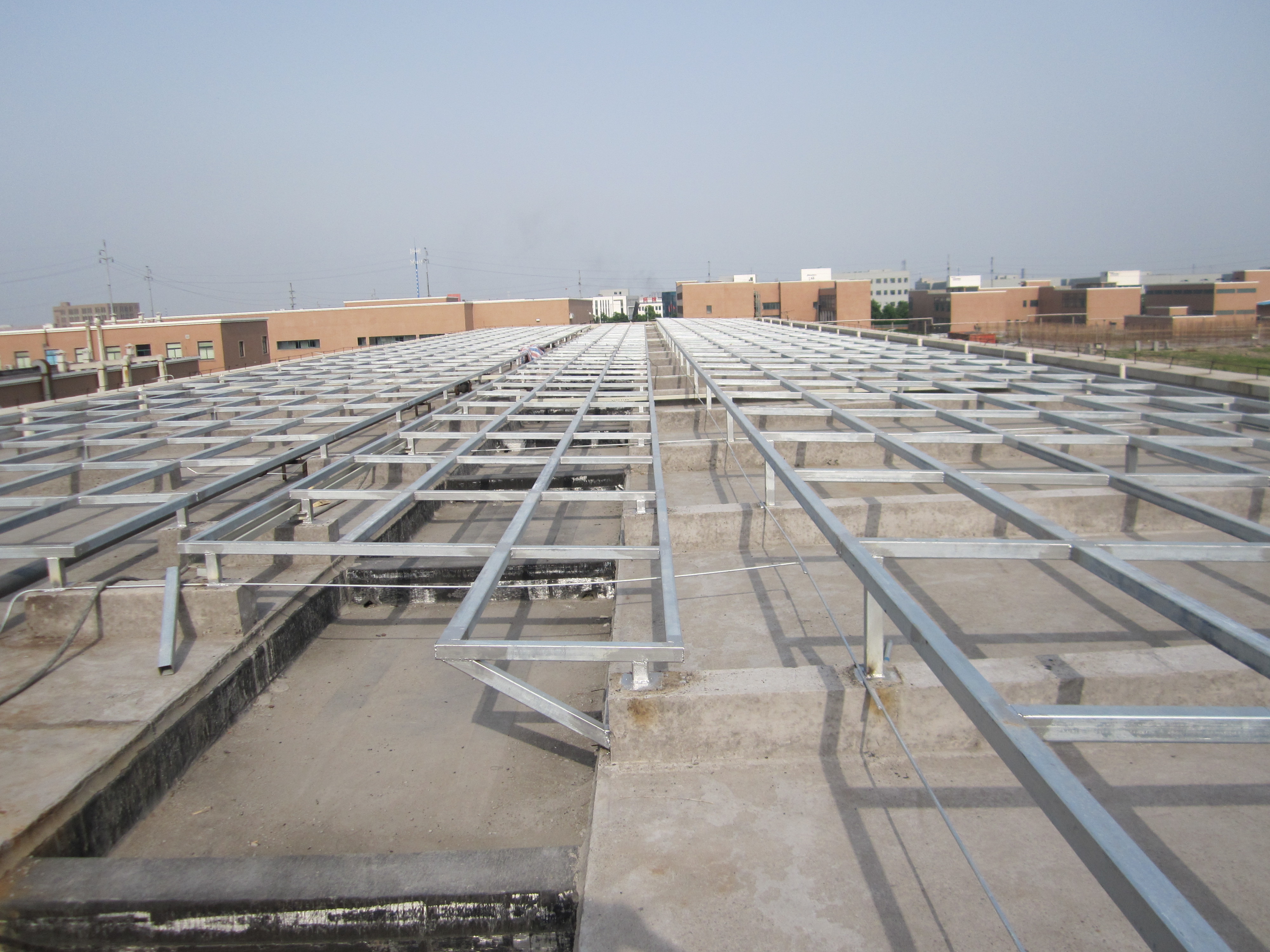 在鋼結(jié)構(gòu)防雷施工中,可以做好夾具之后就下防雷鋼筋,焊接完畢后再進行下一步光伏支架的系統(tǒng)的施工,板與板之間用銅導線連接起來,用沉頭自攻釘打到板里面去?;蛘哌B接在電池板的螺栓上。