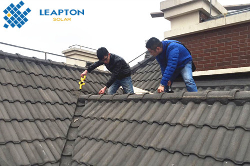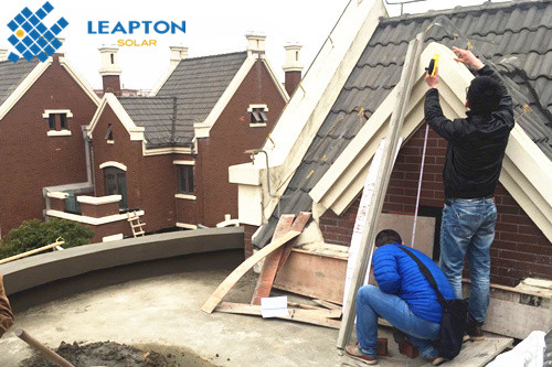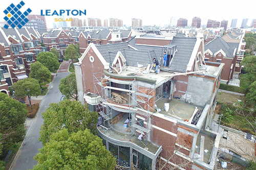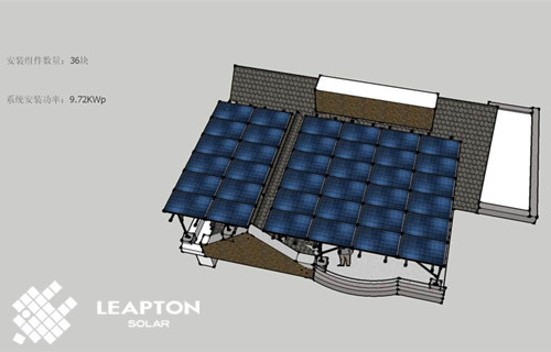 本期麗瀑小編將為您介紹浦東尼德蘭北岸9.72kw單晶屋頂光伏發(fā)電項(xiàng)目案例,該別墅屋頂結(jié)構(gòu)復(fù)雜,由斜瓦屋面和混凝土平頂屋面組成,麗瀑能源勘測(cè)后,設(shè)計(jì)安裝起棚式豎向4段6列/2段6列支架,高度約2.4米。共安裝36塊270w單晶硅太陽(yáng)能電池板,安裝容量9.72kw。