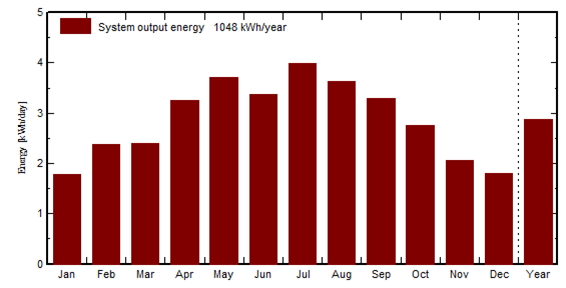 2)西立面安裝組件4塊,首年估算可發(fā)電1048度
