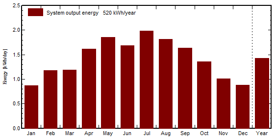 1)東立面安裝組件2塊,首年估算可發(fā)電520度