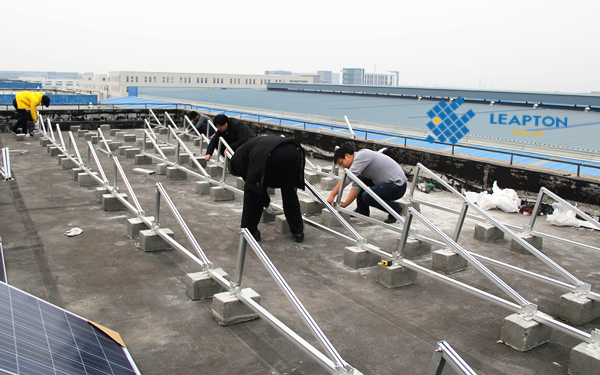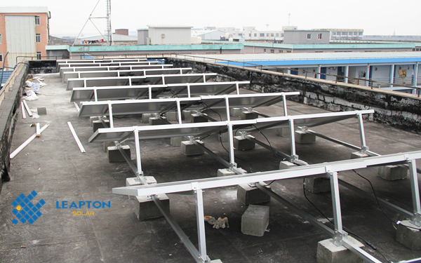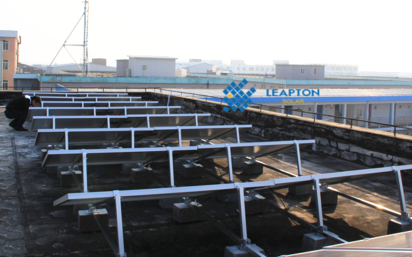 屋頂情況:混凝土平屋頂,采用壓載式支架,支架傾角15度,組件安裝在支架上,經(jīng)建模估算,安裝250W多晶硅組件19塊。